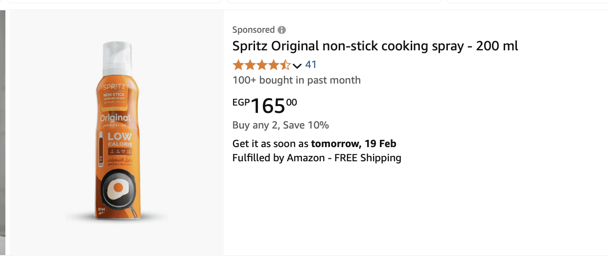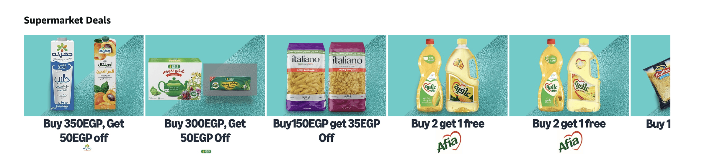 2- Buy X EGP, Get Y EGP; One of the most effective promotional strategies across e commerce platforms is the subscribe and save model. Nothing drives the consumer more than saving money on seasonal promotions. As for FMCG brands, this model is perfect for advantageous price competition as well as increasing basket size during a peak season like Ramadan. iSiS implementation of the “Buy 300 EGP from iSiS get 50 EGP” model on amazon and Noon across dates, oriental juices, and snacks, as well as Spritz implementation of “Buy 2 get 30 EGP off” are the perfect example of The right product, at the right time, with the right price”